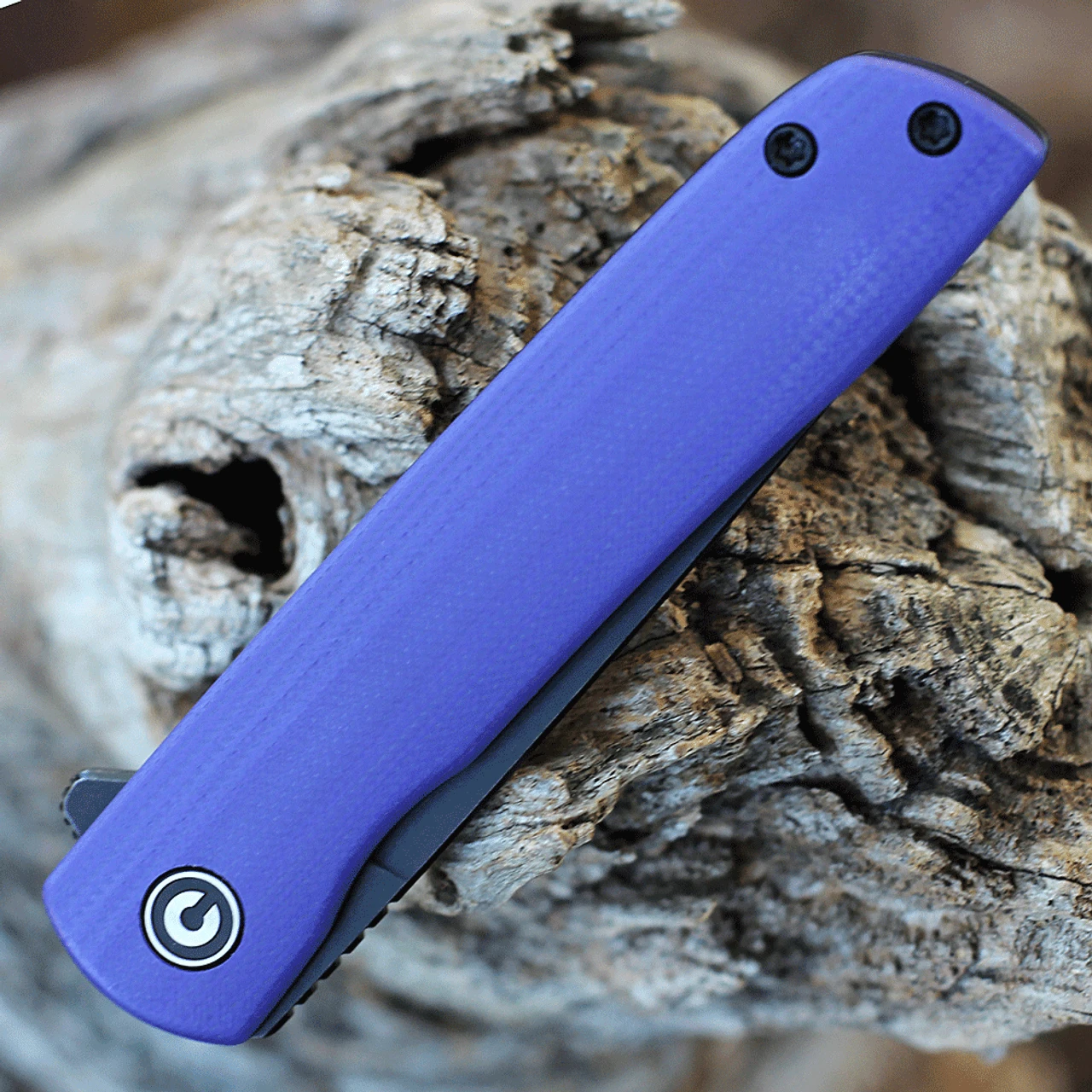 CIVIVI Bo Folding Knife (C20009B-5)- 2.92″ Blackwashed Nitro-V Drop Point Blade, Purple G-10 Handle