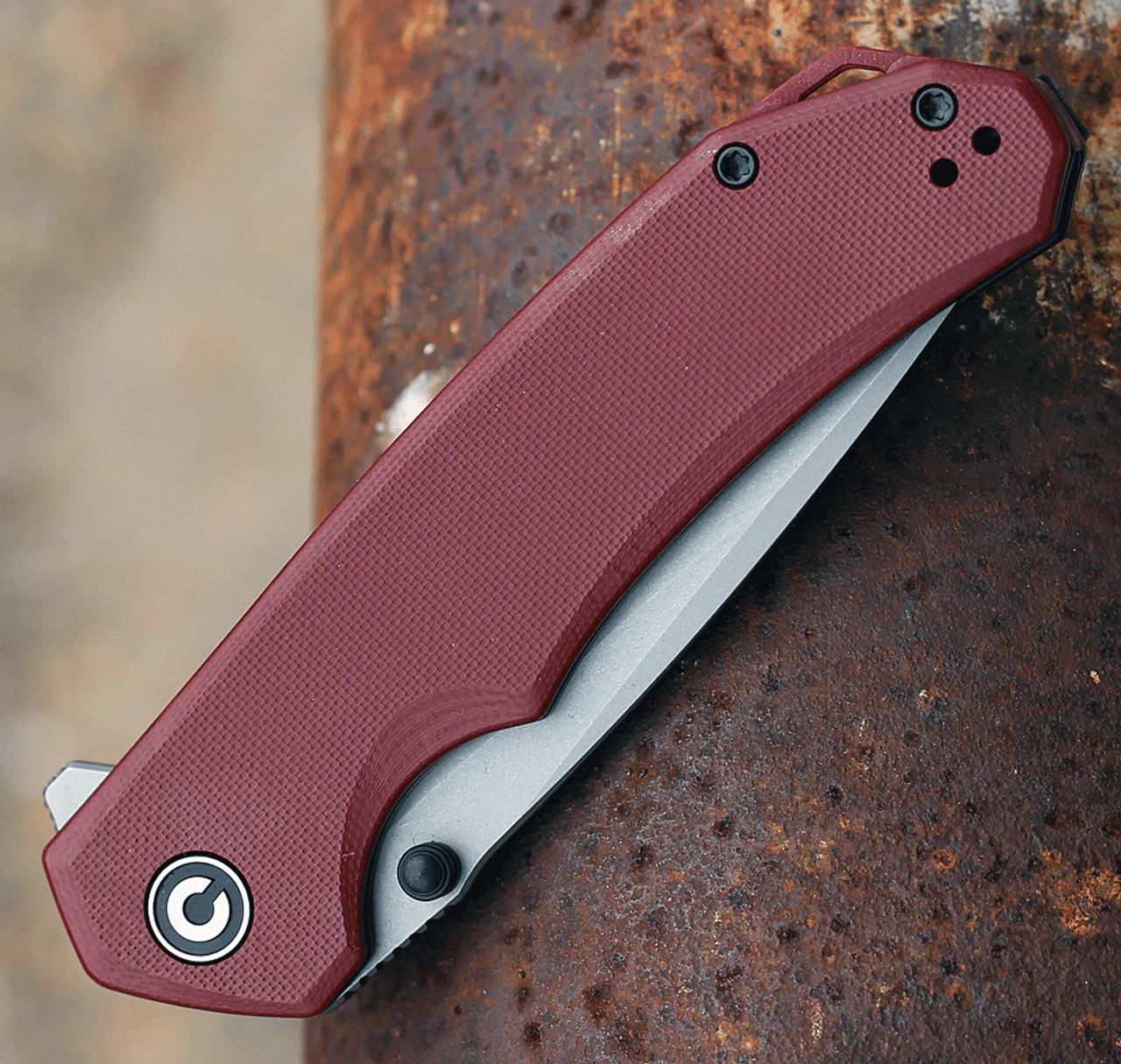 CIVIVI Brazen Folding Knife (C2023B)- 3.46″ Stonewashed 14C28N Drop Point Blade, Burgundy G-10 Handles