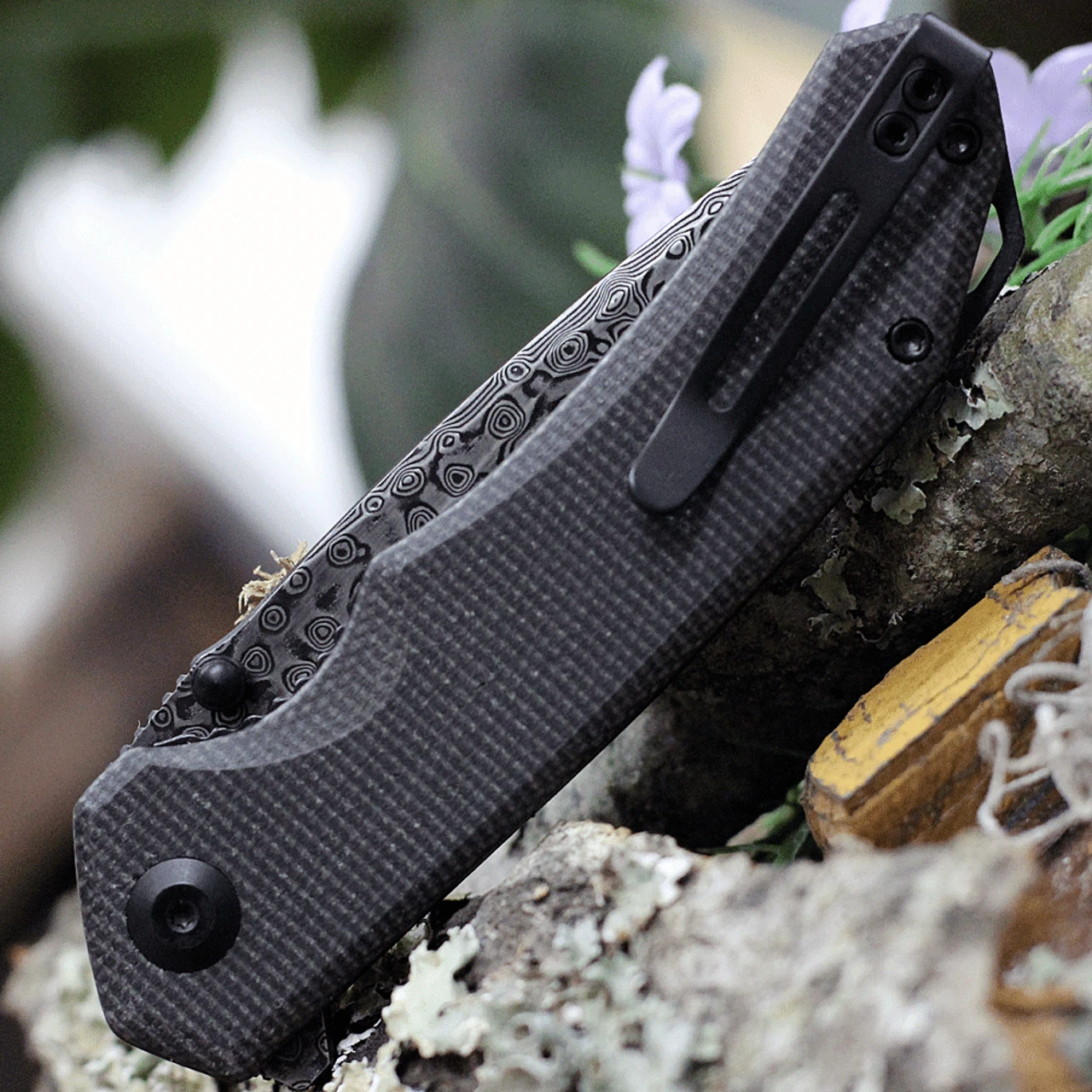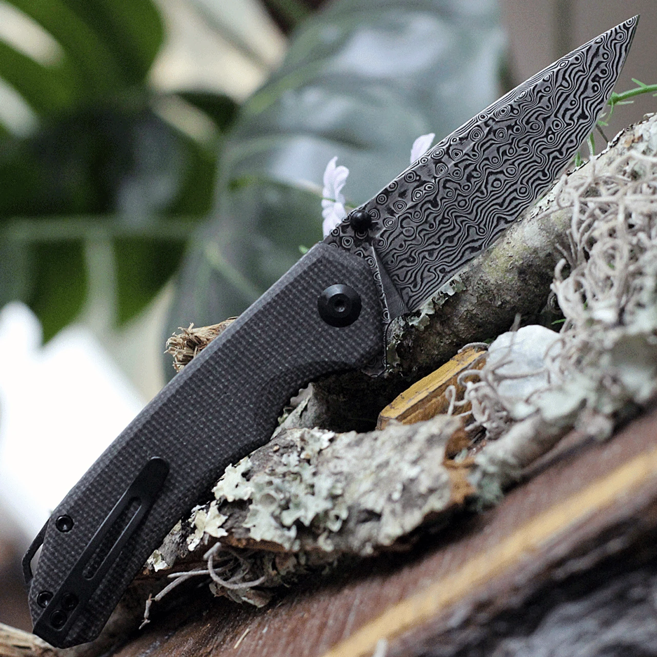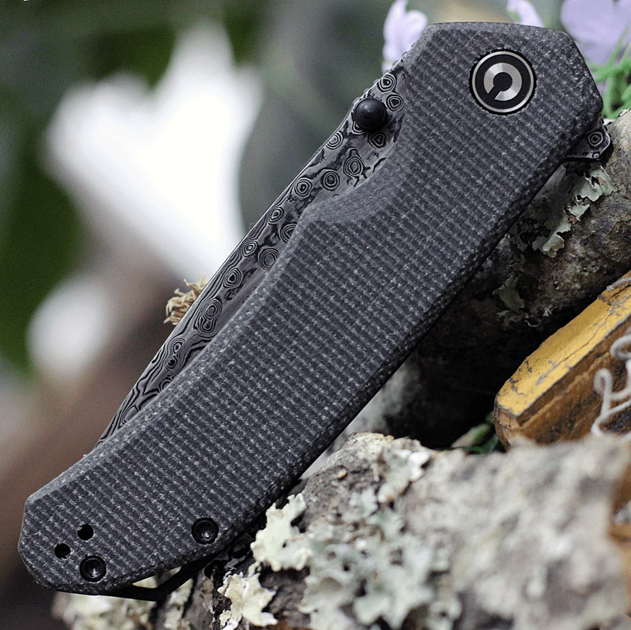 CIVIVI Brazen Flipper (C2102DS-3)-3.46″ Damascus Drop Point Blade, Dark Green Micarta Handle