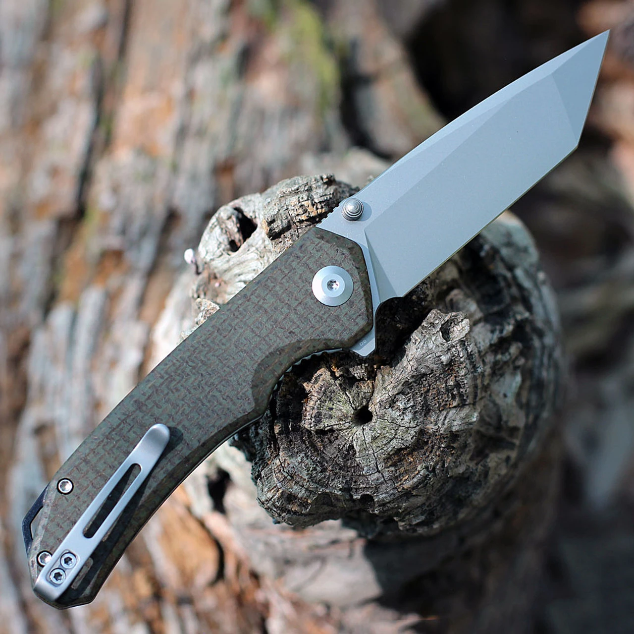 CIVIVI Brazen Folding Knife (C2023F)-3.46″ Bead Blasted D2 Tanto Blade, Green Coarse Micarta Handle