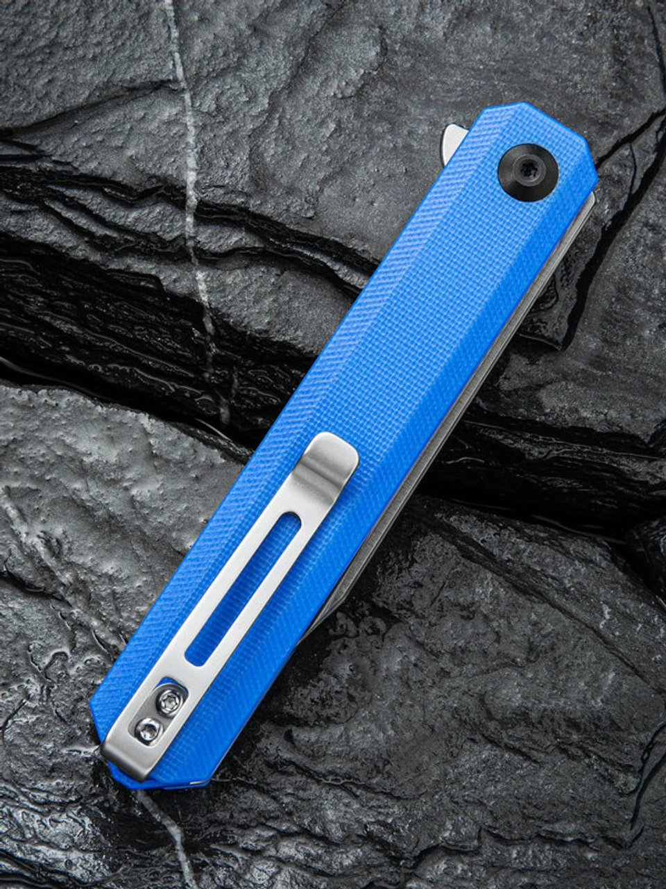 CIVIVI Chronic Folding Knife (C917B)- 3.22″ Satin 9Cr18MoV Clip Point Blade, Blue G-10 Handles