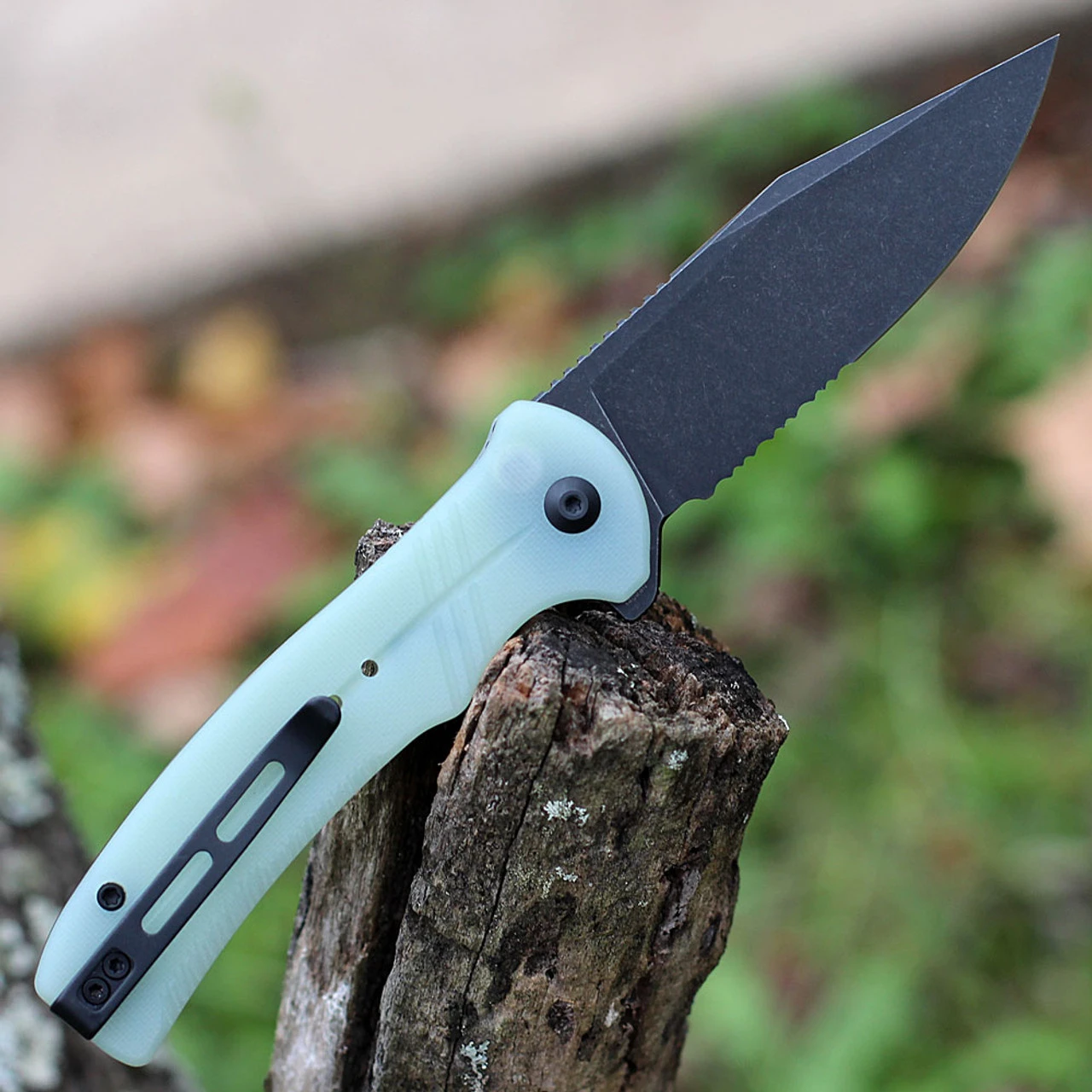 CIVIVI Cogent Folding Knife (C20038E-3)- 3.47″ Blackwashed 14C28N Clip Point Blade, Jade G-10 Handle