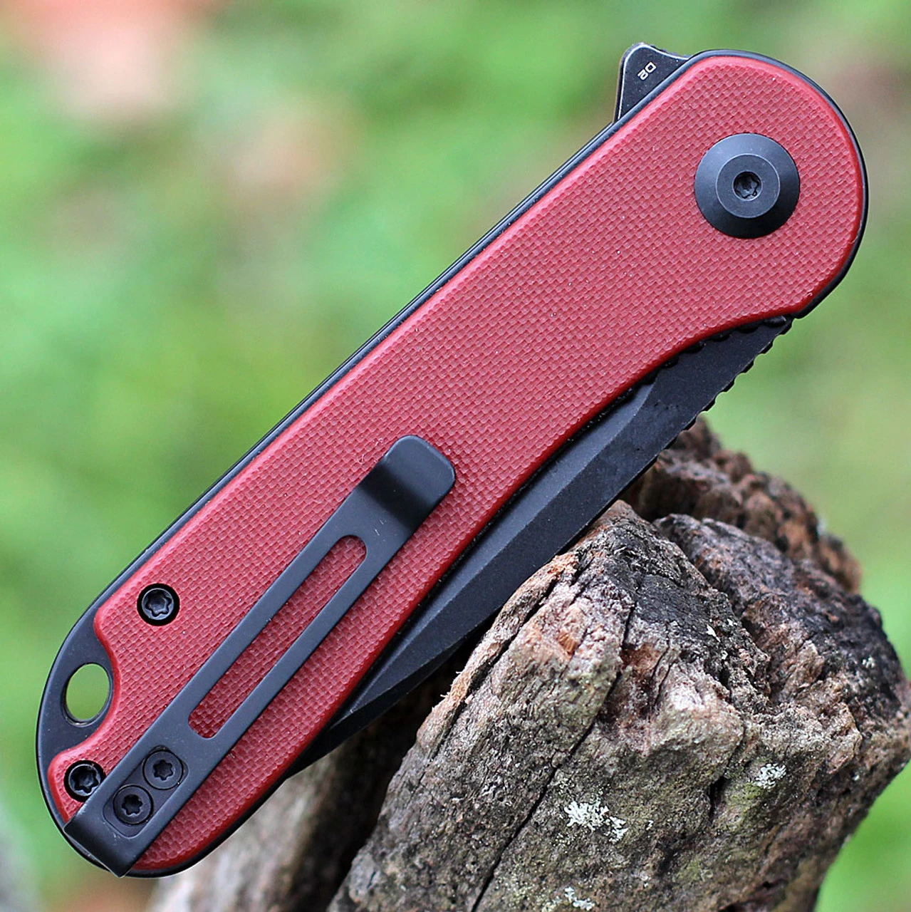CIVIVI Elementum Folding Knife (C907A-1)- 2.96″ Blackwashed D2 Drop Point Blade, Burgundy G-10 Handles