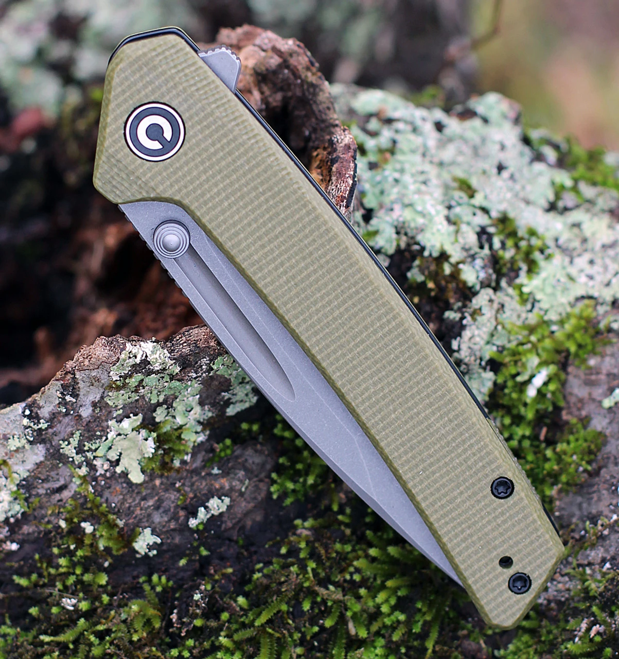 CIVIVI Keen Nadder Folding Knife (C2021C)- 3.48″ Stonewashed N690 Tanto Blade, Olive Micarta Handles