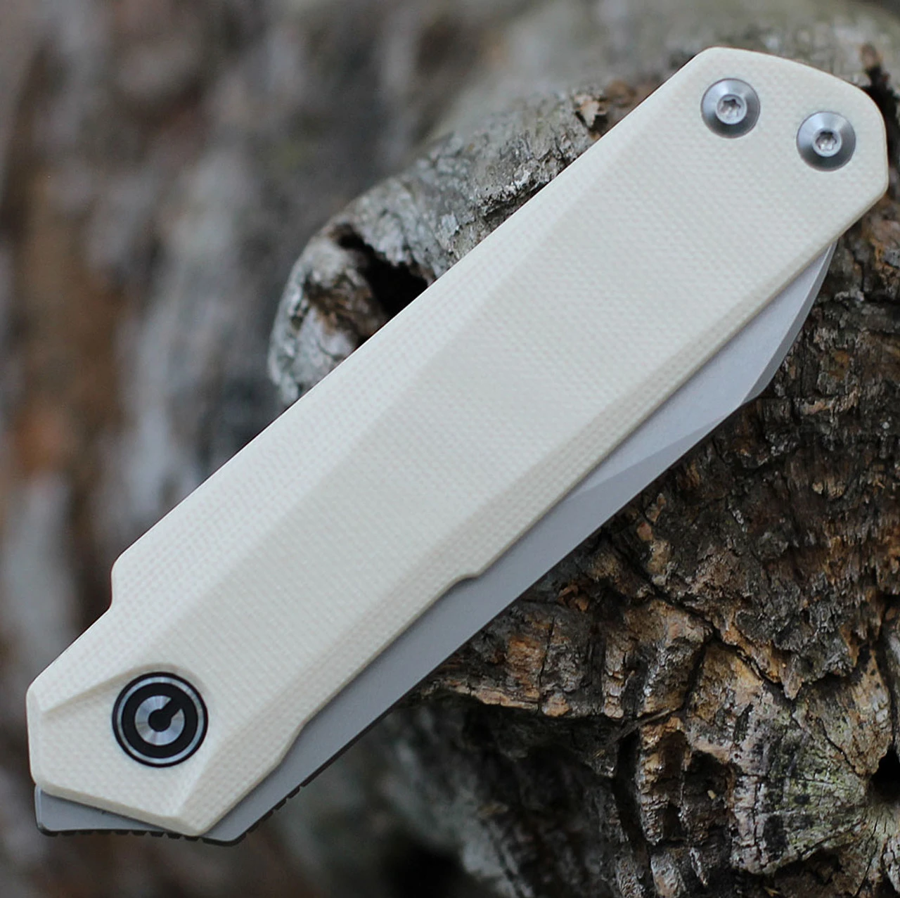 CIVIVI Ki-V Plus Front Flipper Knife (C20005B-2) – 2.52″ Satin Bead Blasted Reverse Tanto Nitro-V Blade, Ivory G-10 Handle