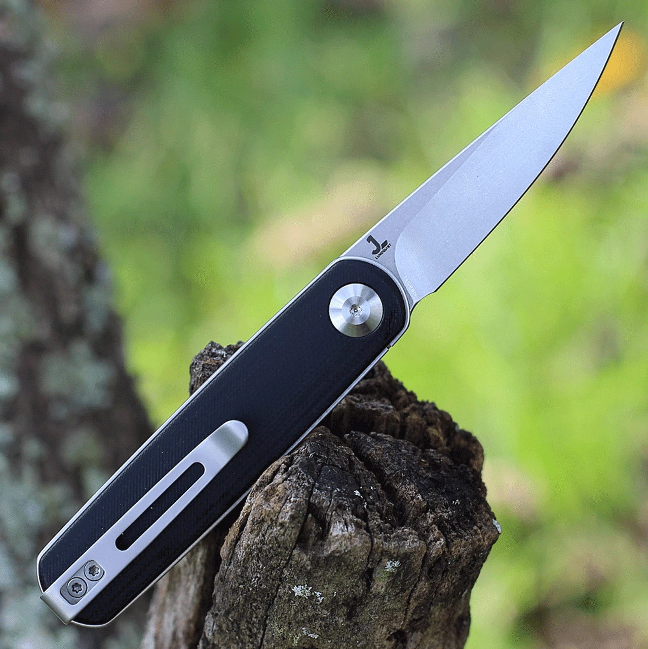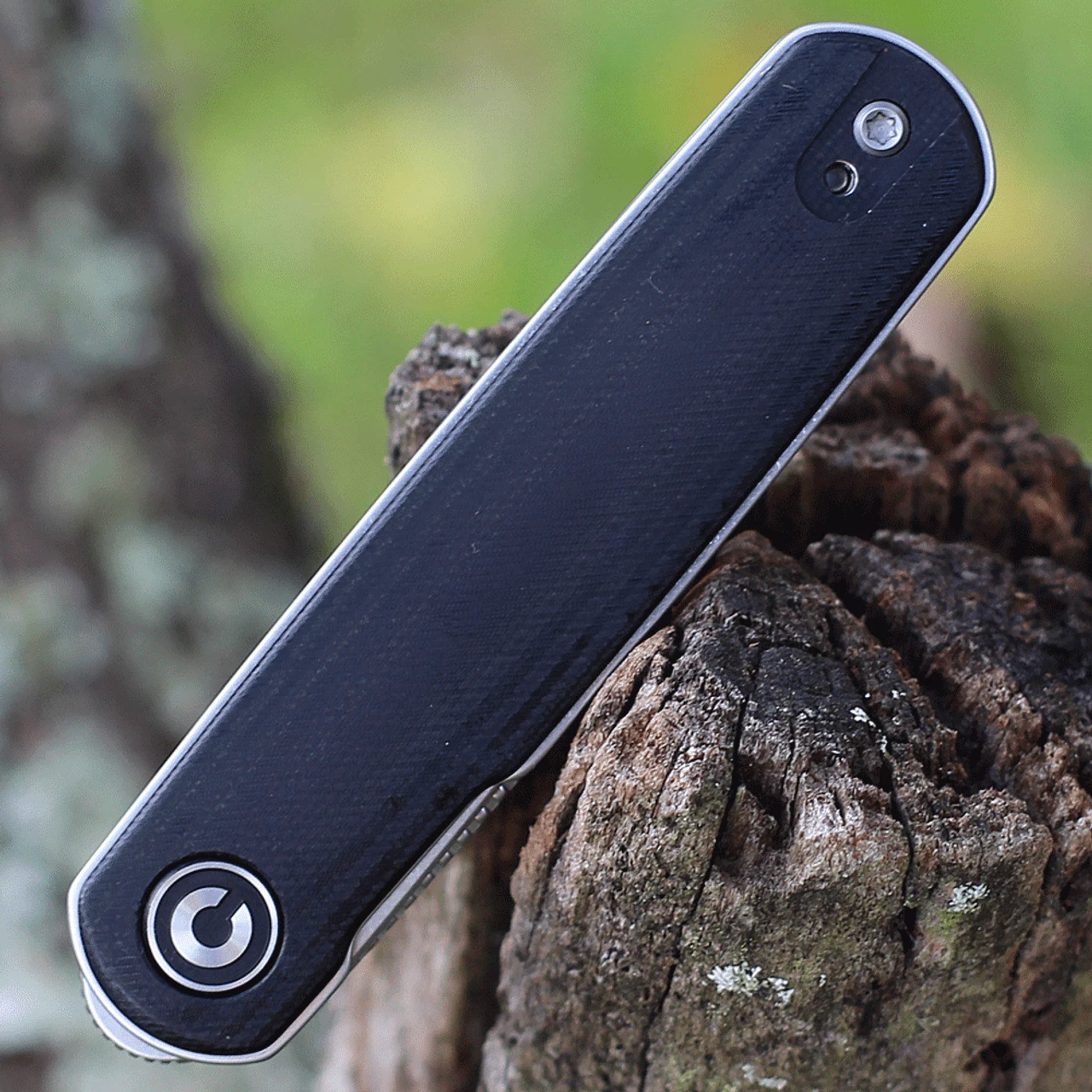 CIVIVI Lumi Folding Knife (C20024-3)- 2.56″ Stonewashed 14C28N Drop Point Blade, Black G-10 Handleย
