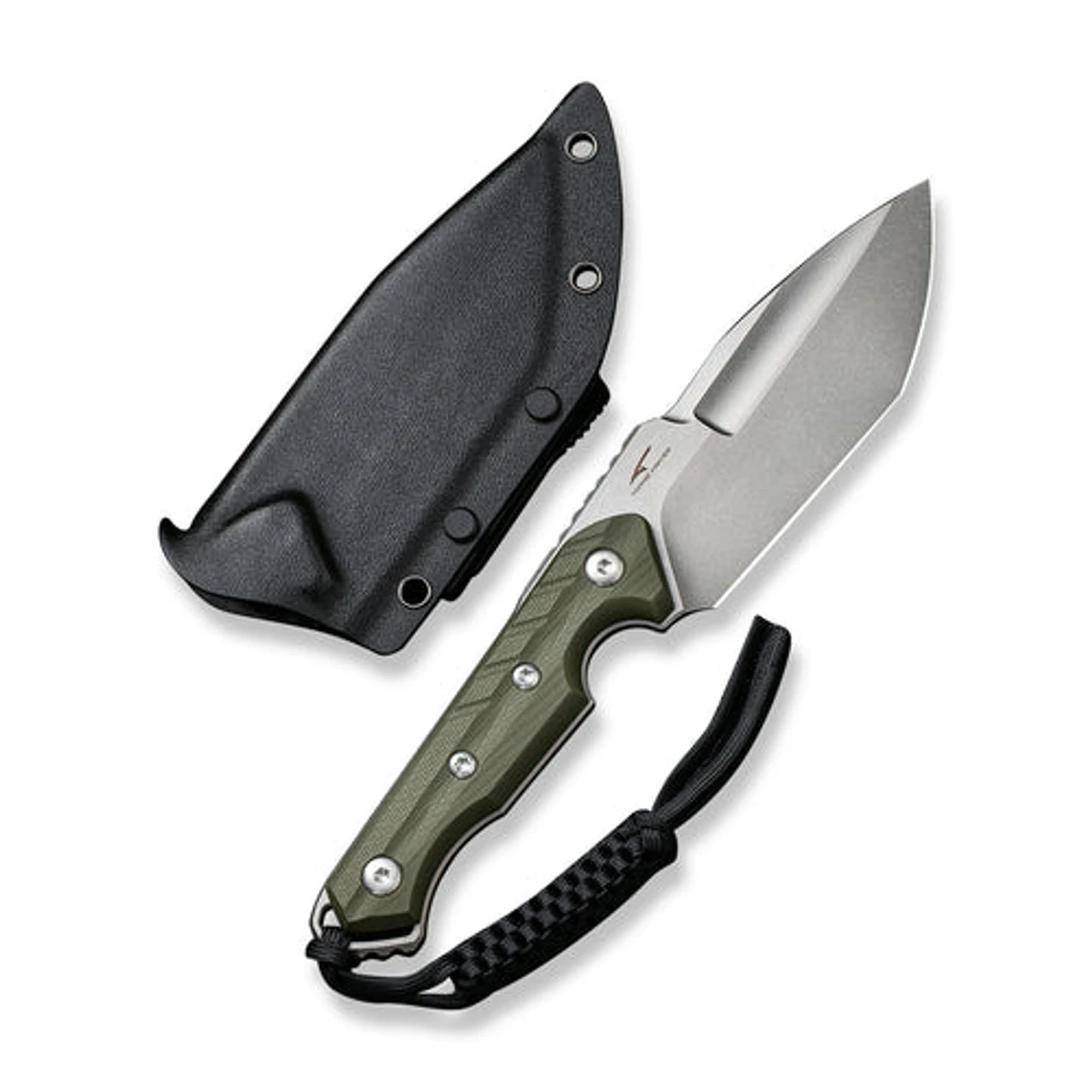 Civivi Maxwell Fixed Blade (C21040-2) 4.74″ Stonewashed D2 Spear Point Plain Blade, Olive Drab Green Handle