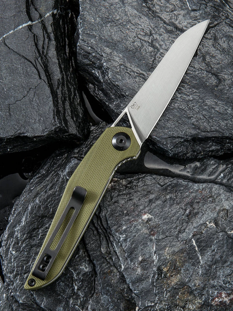 The CIVIVI Knives and Isham Mckenna folding knife is a convenient and portable option for your everyday carry needs. This model features green G-10 scales and a satin finished sheepsfoot blade. The front flipper offers easy one-handed deployment, while the stainless steel liner lock secures the blade in place. The stainless steel pocket clip provides easy carrying.