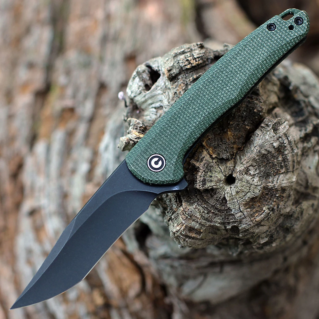 CIVIVI Mini Sandbar Folding Knife (C20011-3)-2.95″ Blackwash Nito-V Clip Point Blade, Green Micarta Handle