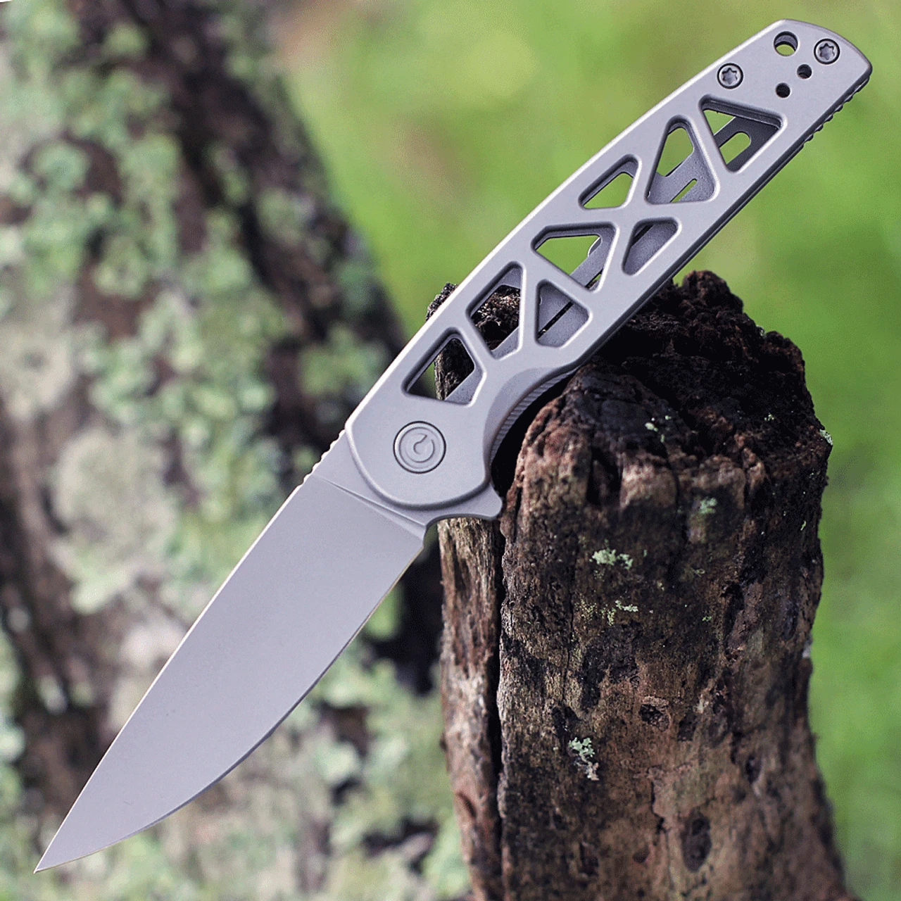 CIVIVI Perf Folding Knife (C20006-A)- 3.12″ Stonewashed Nitro-V Drop Point Blade, Gray Stainless Steel Skeletonized Handles
