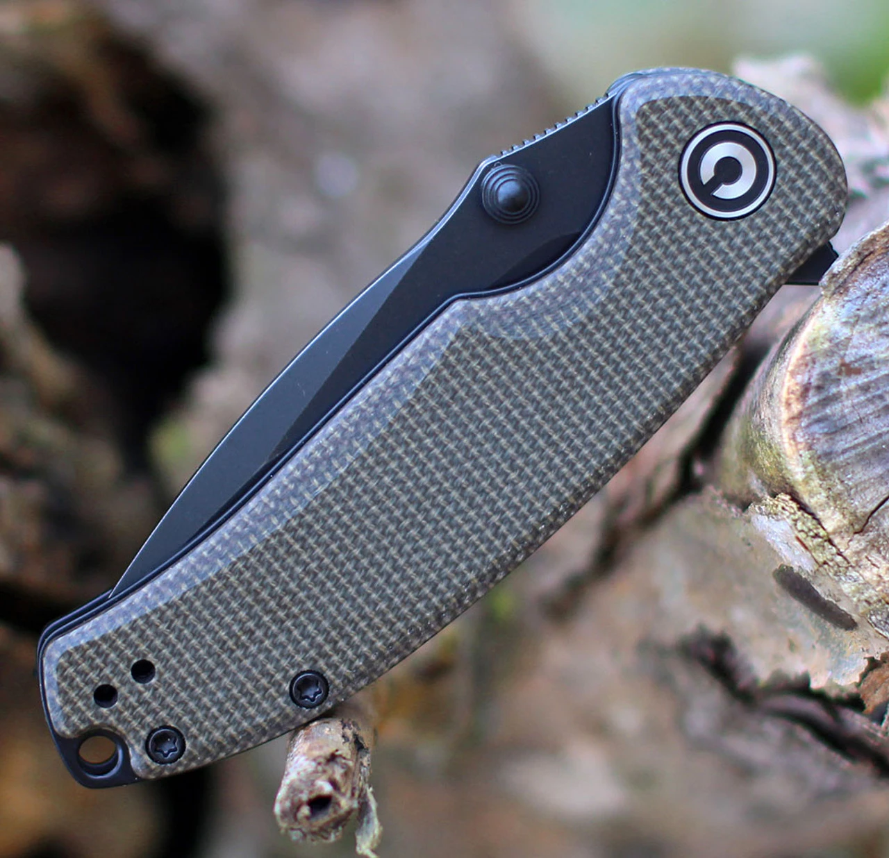 CIVIVI Pintail Folding Knife (C2020C)- 2.98″ Blackwashed CPM S35VN Drop Point Blade, Dark Green Micarta Handles