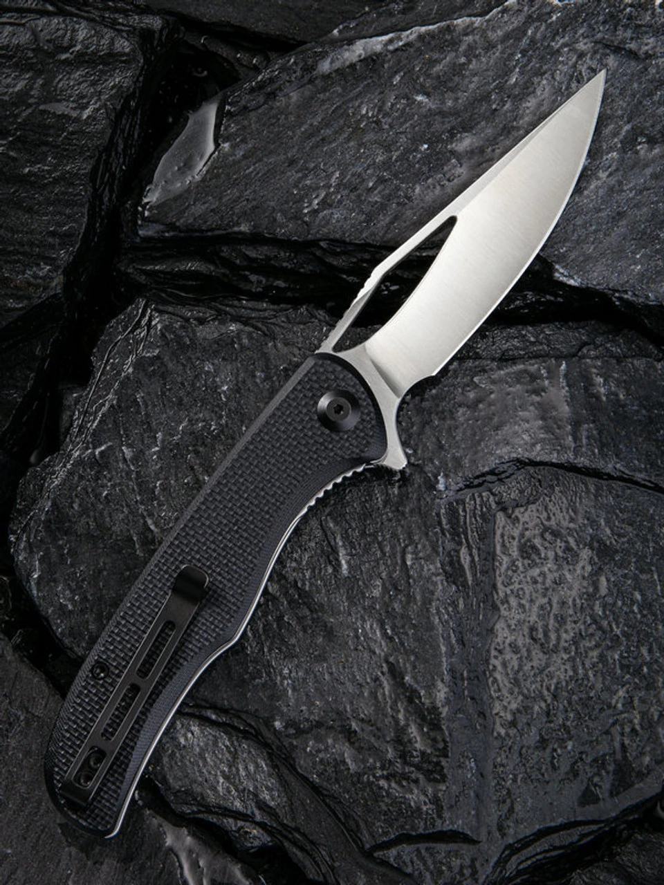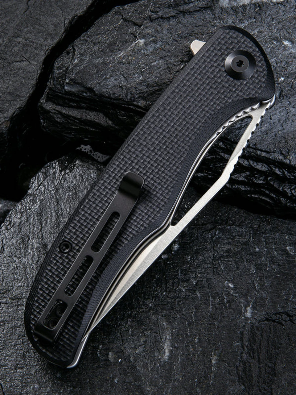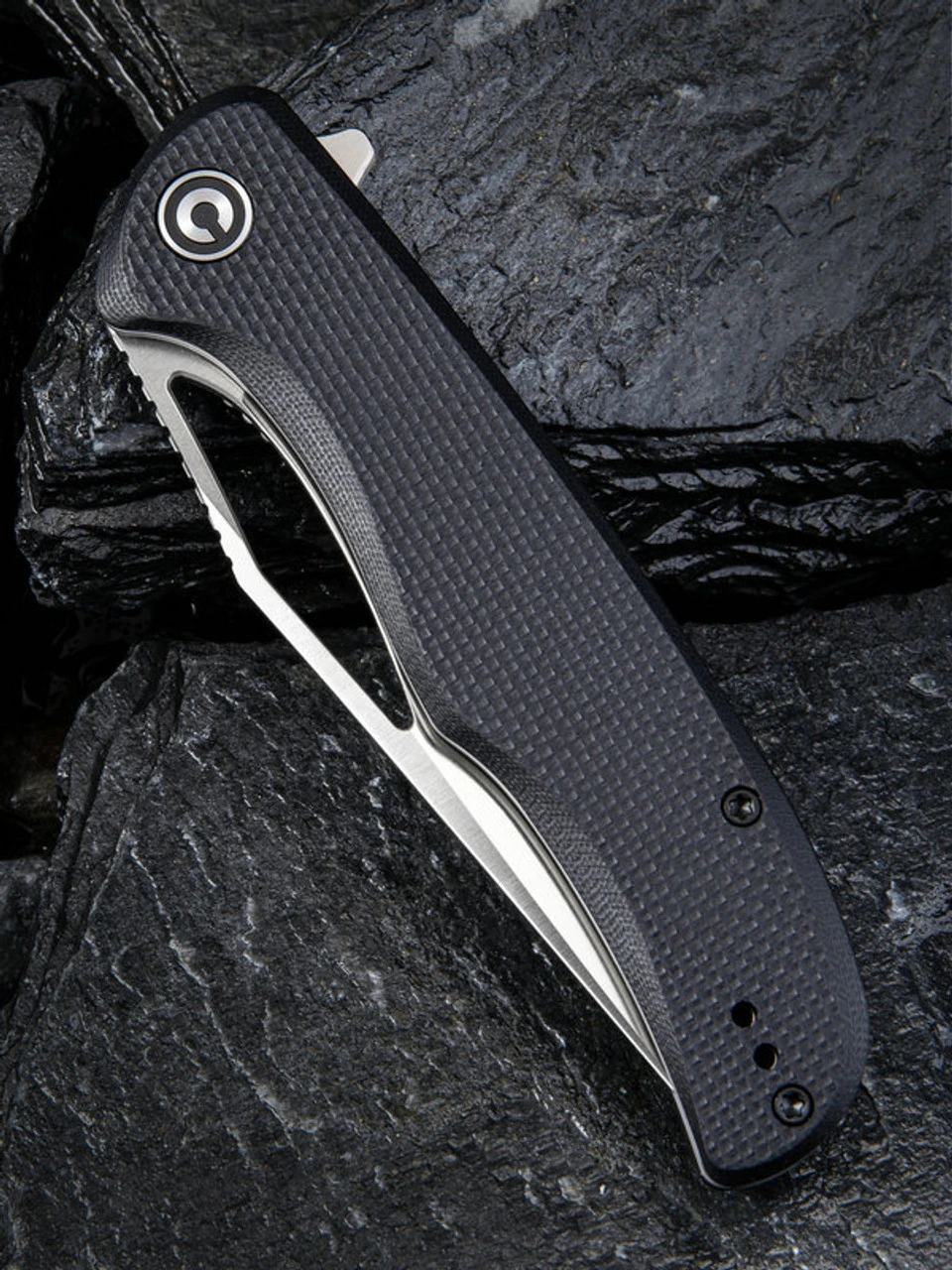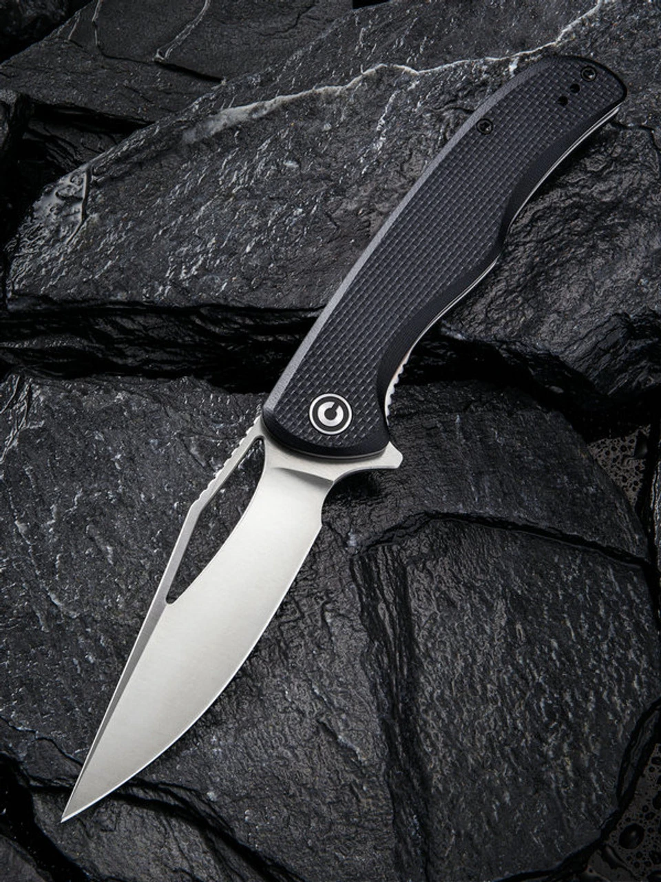CIVIVI Shredder Folding Knife (C912C)- 3.70″ Satin D2 Clip Point Blade, Black G-10 Handles