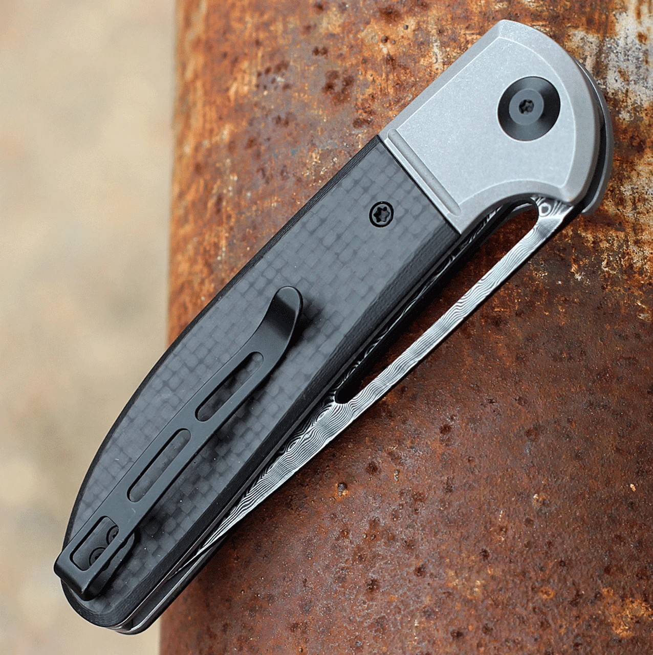 - Carbon fiber clad G-10 scales with steel liners.